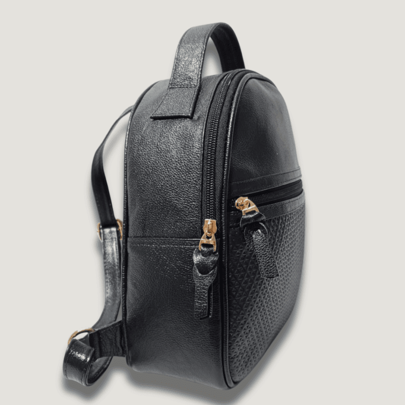 Bolso mediano tipo morral elaborado en cuero, diseñado para acompañar el día a día con estilo y comodidad. Cuenta con un bolsillo frontal para acceso rápido, uno trasero para mayor seguridad y un interior amplio que permite llevar lo esencial con orden, incluyendo un bolsillo interno para pequeños objetos. Ideal para quienes buscan un accesorio práctico, moderno y versátil.
