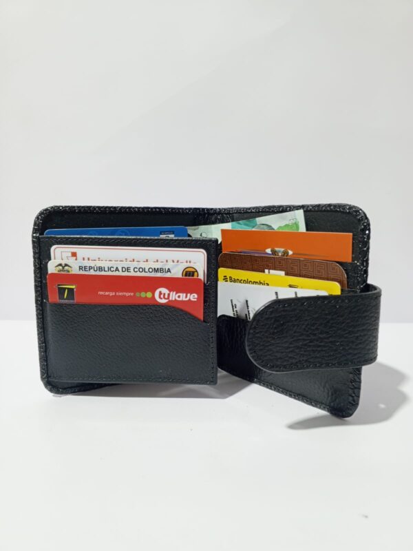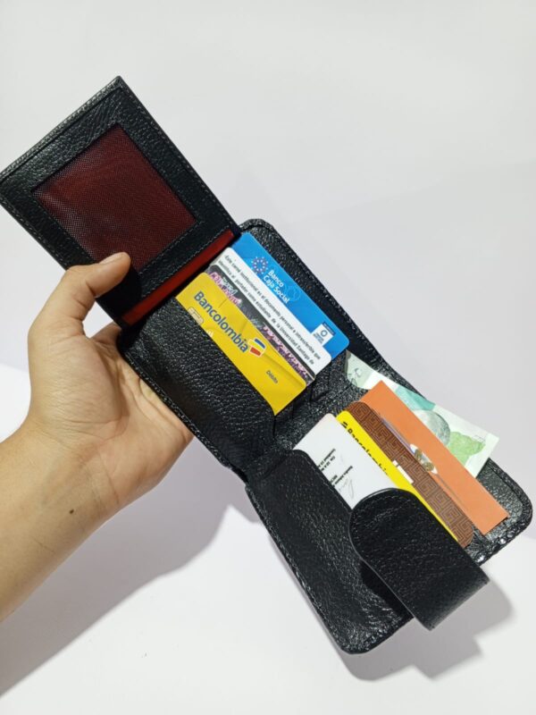 Con un diseño sofisticado, esta billetera cuenta con múltiples divisiones para organizar tus tarjetas de manera ordenada. Su espacioso compartimento principal te permite guardar billetes con comodidad, mientras que en la parte trasera encontrarás un bolsillo adicional para monedas, asegurando que todo esté siempre al alcance de tu mano.